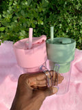 - [Creative Design] The cup is covered with a 1.5 cm diameter suction mouth, which can be drunk directly with a straw to make the taste fresher, avoid opening the lid, and the juice will not be oxidized! The handle design allows it to be used as a water cup (Bonus Silicone Straw X1 Cleaning Brush X1 Fruit Peeling Tool X1)